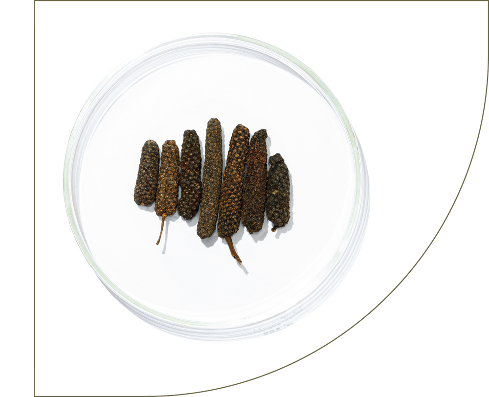 Pipalli is a potent digestive stimulant that boosts metabolism, enhances nutrient absorption, and improves overall digestive function. Its warming properties help relieve gut sluggishness and promote balance.