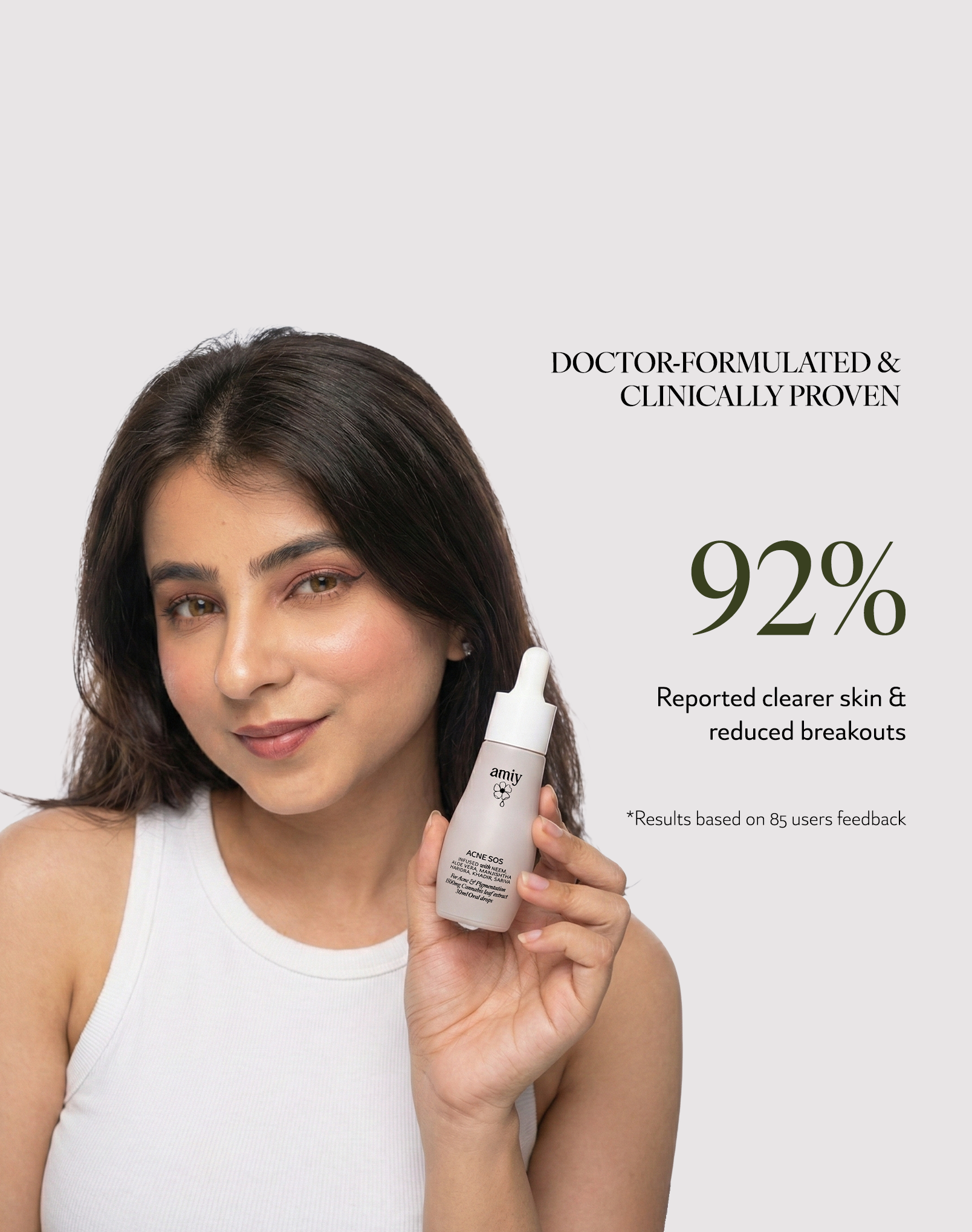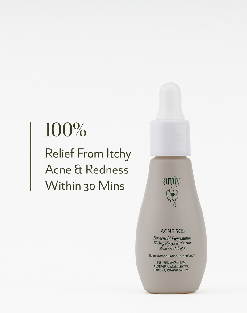 Watch your skin transform with Acne SOS dual-action advanced oral drops as every drop of our revolutionary bio-neuromodulator herbal plant elixir submerges the skin’s deepest layers with nutrition to unleash your inner brilliance. This life-giving nutrition results in brilliant and glowing skin from within. A formulation that works at reducing blemishes while erasing pigmentation and skin darkening, and lifts years of dullness to reveal a deep radiance that makes skin look lit from within. Your skin is drenched in nutrition to coax it back to its optimal state, leaving it looking dewy & luminous.