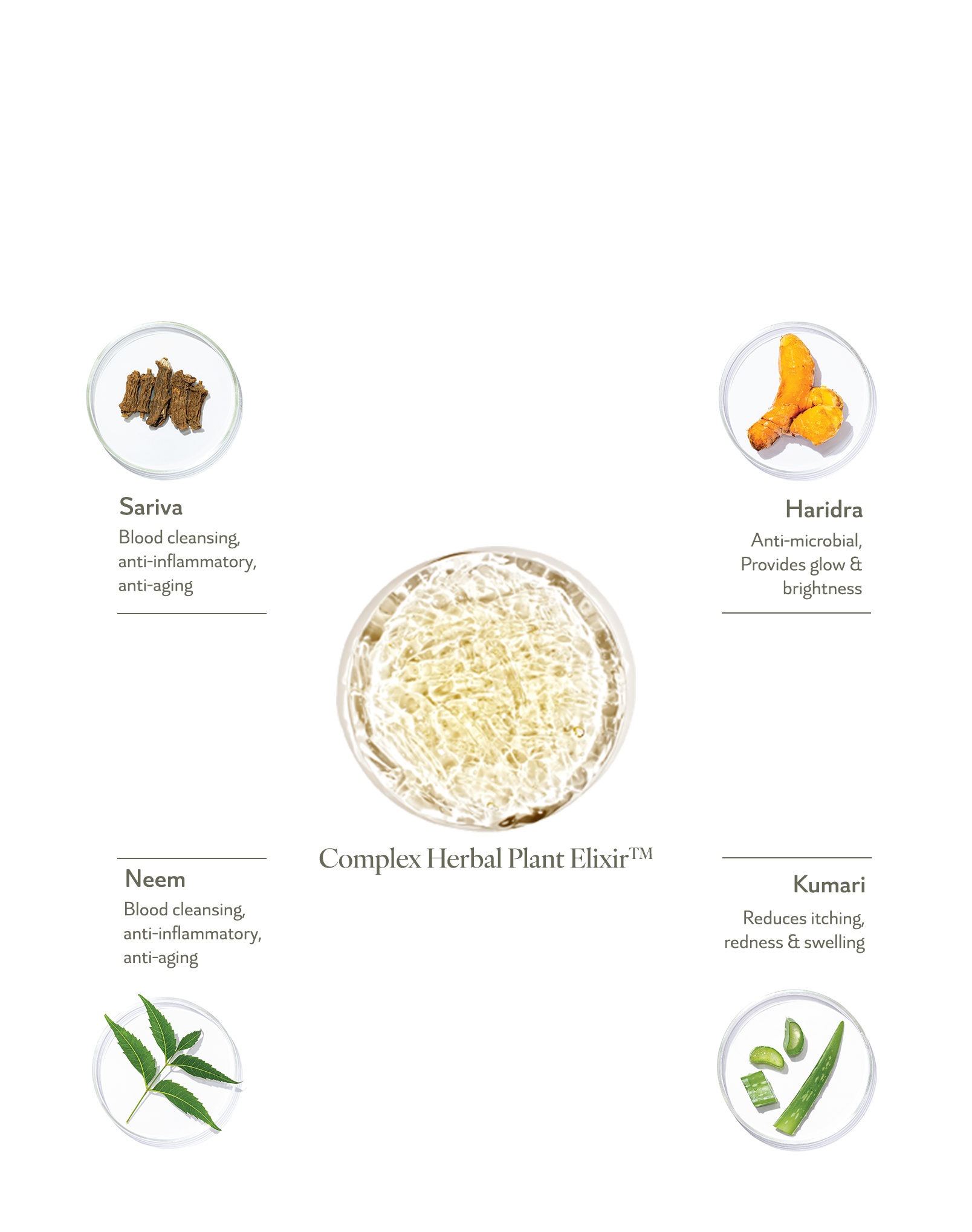 turmeric, neem, aloe vera, manjishtha, khadir, sariva soothe acne and regenerate skin from pigmentation,