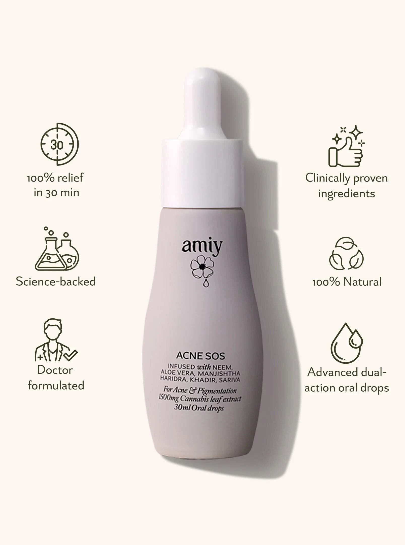 "I’ve tried so many products for my acne, but nothing worked until I discovered Acne SOS. These drops don’t just mask the problem they actually heal your skin from within.