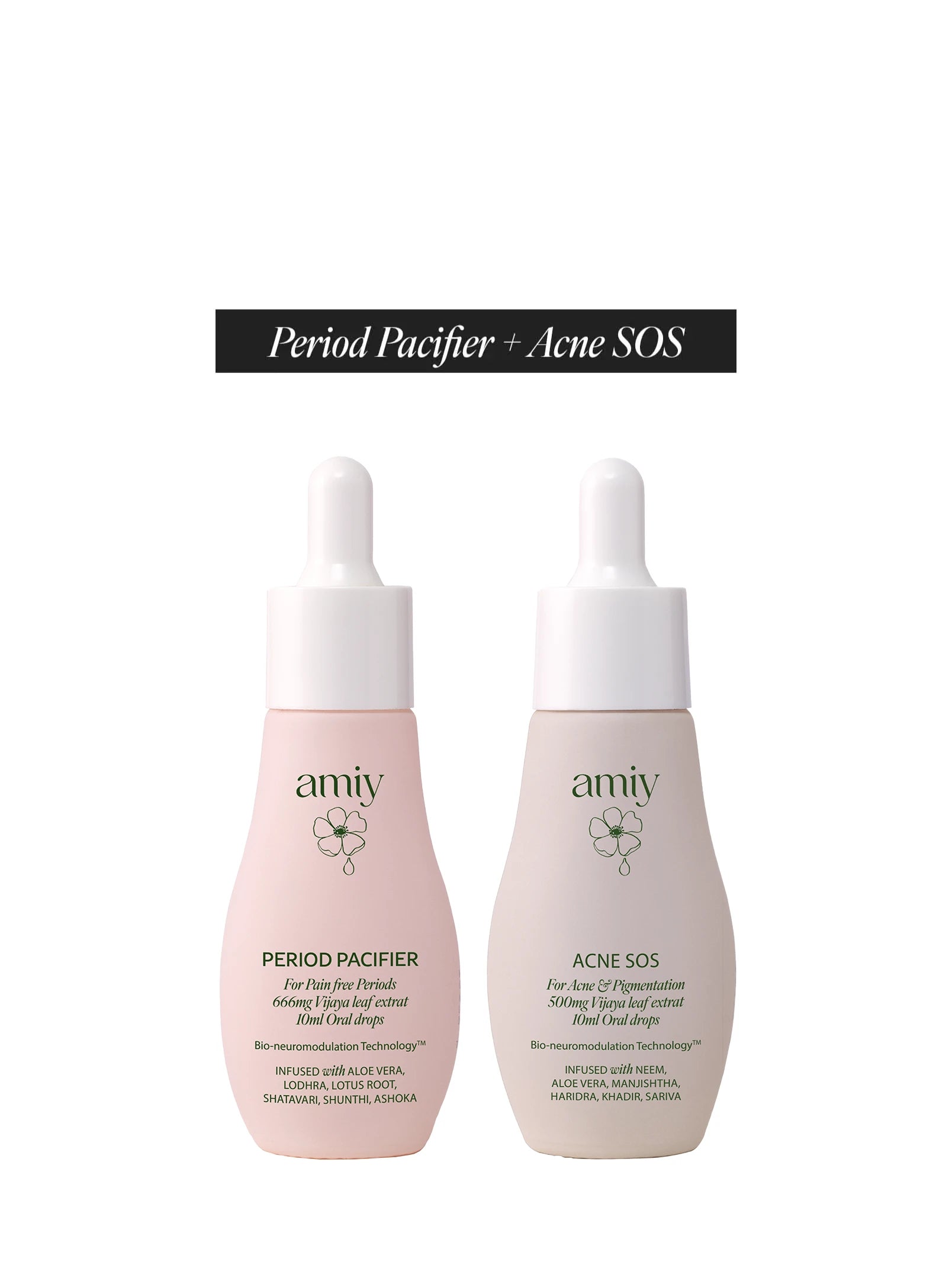 Acne, Hyperpigmentation & Uneven Skin Tone, Inflammation and itching, Dull and lackluster complexion, Oil imbalance leading to breakouts, Heavy bleeding, Irregular periods, Vaginal & bladder problems, Hot flashes & sleep disturbances, Paused/stopped periods for 3 months or more, Mild to moderate period pain
