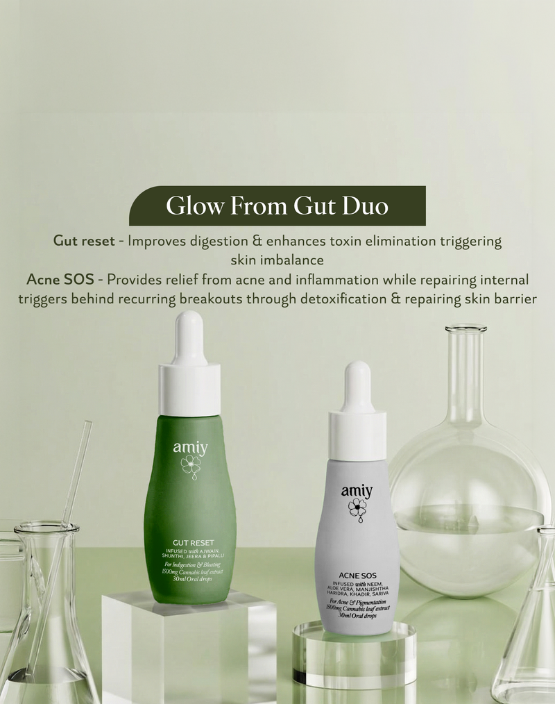 Gut Reset improves digestion and reduces internal buildup, while Acne SOS repairs inflammation and recurring triggers through detoxification & repairing skin barrier