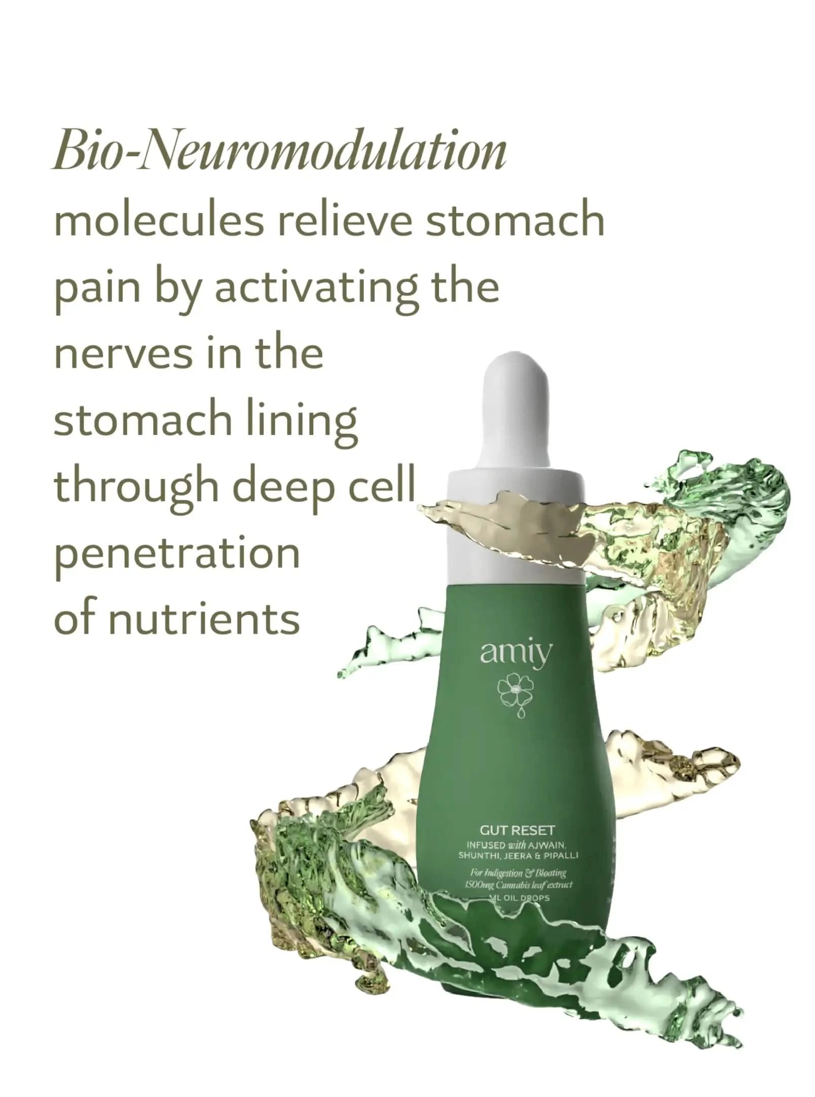 Gut Reset advanced oral drops provide fast relief from stomach pain, bloating, and indigestion using bio-neuromodulatory molecules. These molecules activate cellular functions in the gut and aid in nutrient absorption to not only relieve stomach discomfort but also restore gut health. The formula flushes out toxins while nourishing the gut to bring it back to its optimal state, promoting overall digestive wellness.
