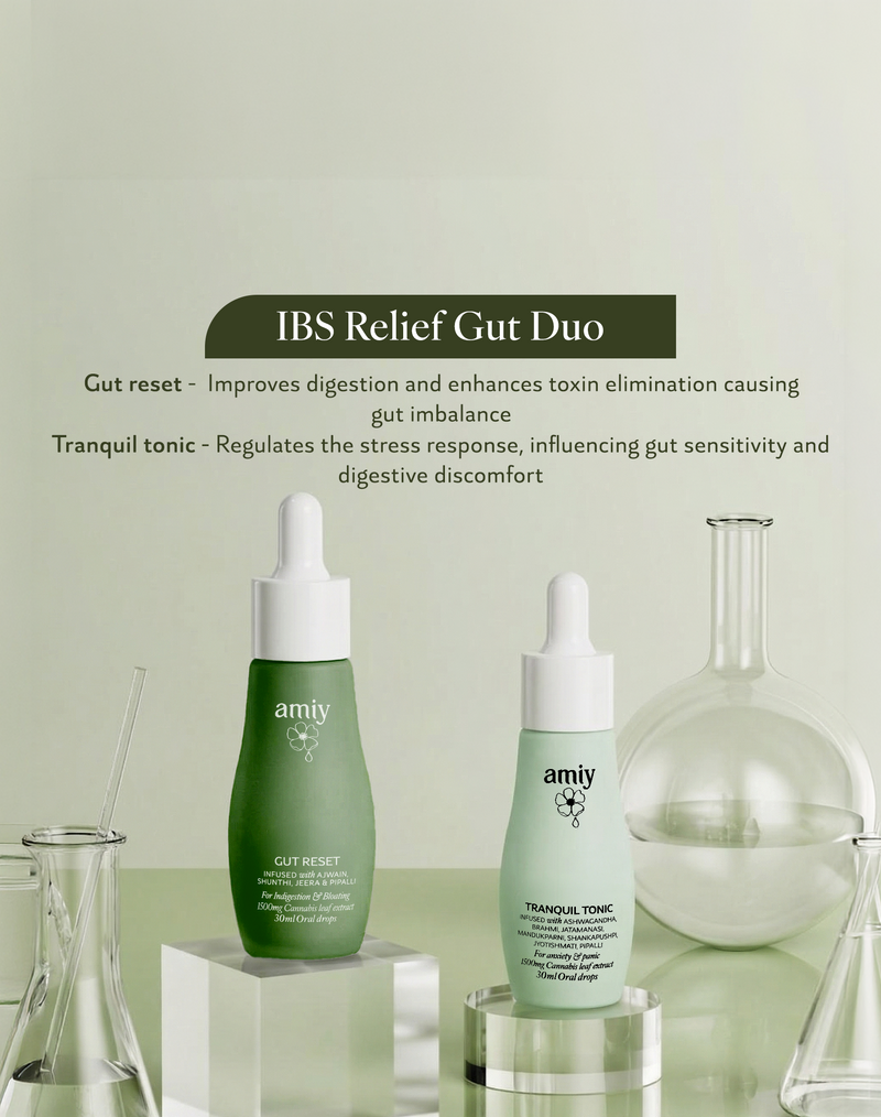 Gut Reset improves digestion and reduces internal buildup, while Tranquil Tonic regulates stress signals that cause gut sensitivity.