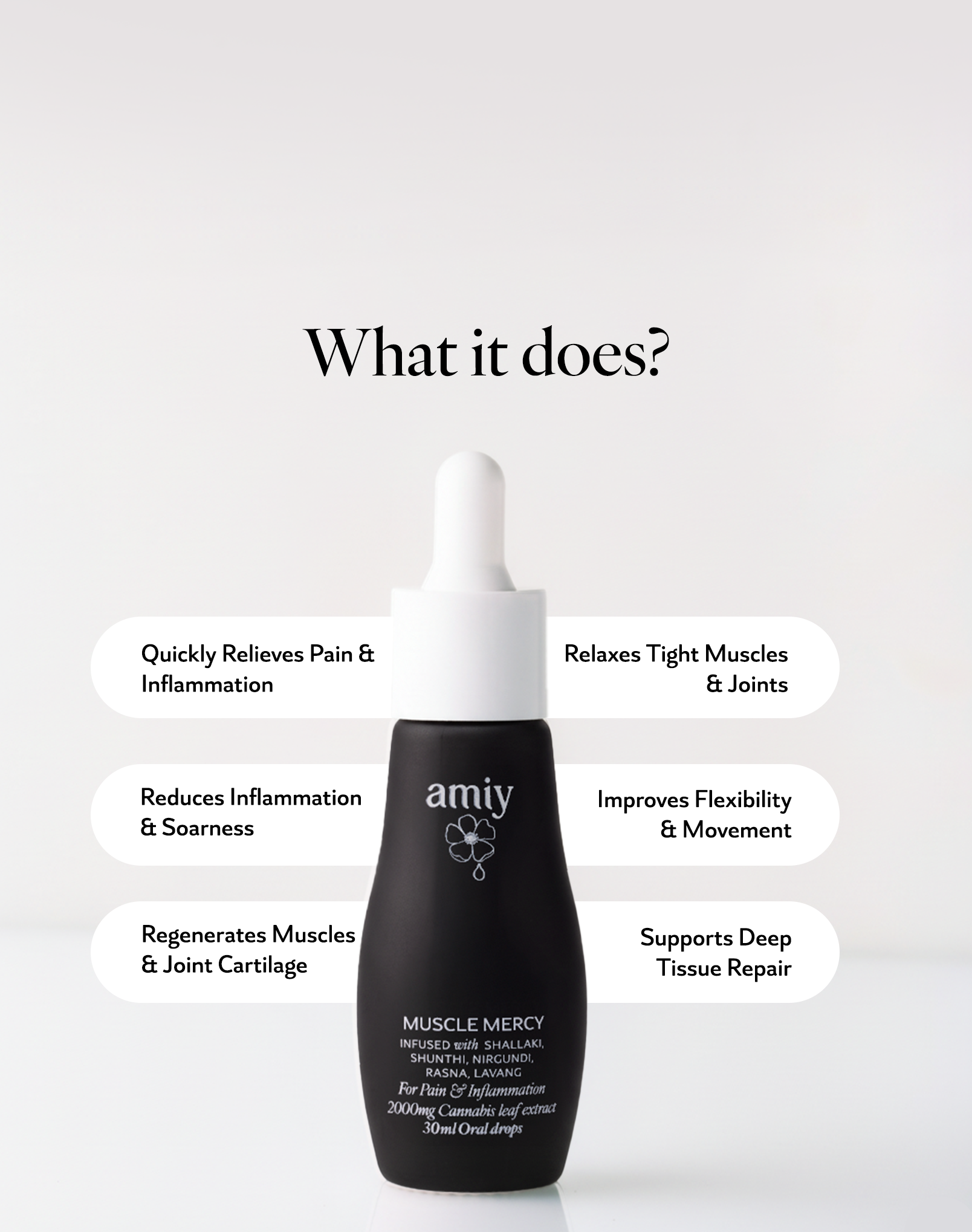 Muscle Mercy repairs inflammation and physical discomfort, while Tranquil Tonic regulates stress signals that trigger pain perception and flare-ups.