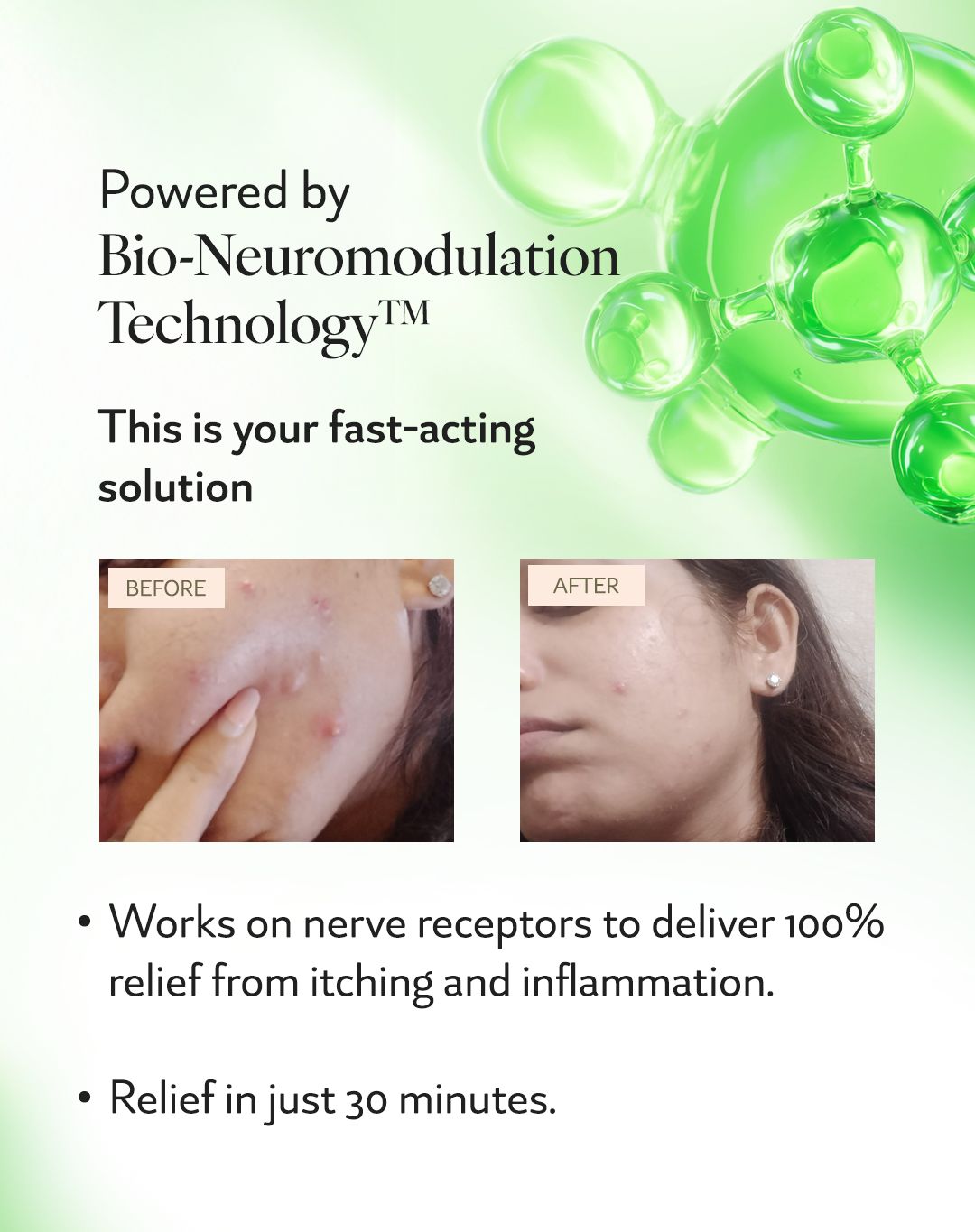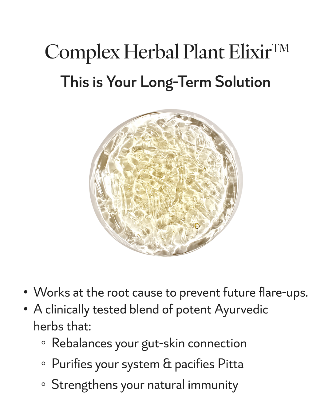 Powered by Bio-Neuromodulation Technology™ for fast-acting relief from redness and itching, Backed by Complex Herbal Plant Elixir™ to heal the root cause of flare-ups, Doctor-formulated and clinically tested Ayurvedic oral drops, 100% natural, non-addictive, safe for daily use, Works on skin, gut, and stress balance together