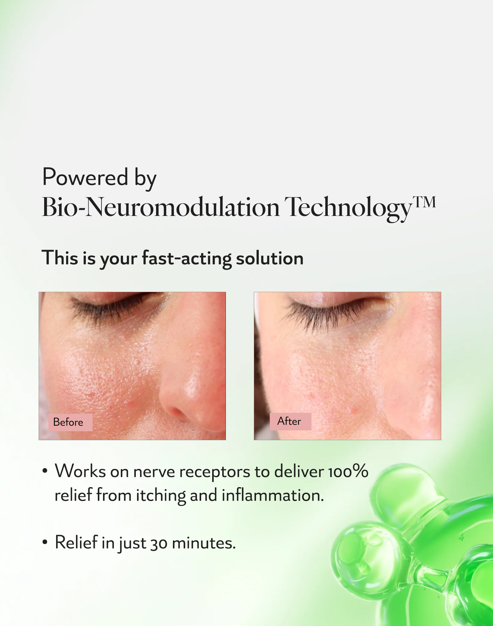 Crafted from 100% natural ingredients with zero side-effects, this formulation combines bio-neuromodulation technology with complex plant elixirs to repair and rebalance skin from within.